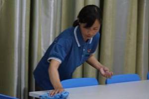 When all the family member were listening to class, volunteers were working on the clean and tidy environment.